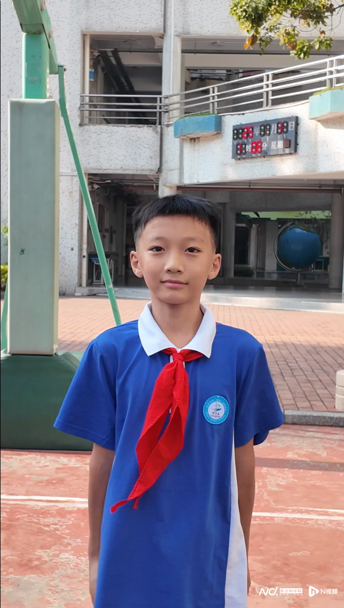 宝安中学(集团)海滨中学初一(1)班蔡梓嘉同学接受记者采访。